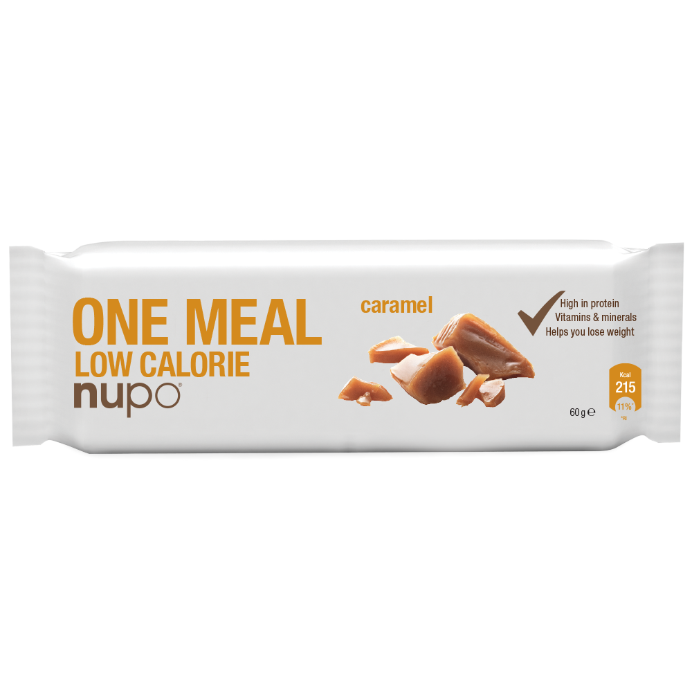 One Meal Bar Caramel 1 ×60 g fra Nupo er en lækker måltidserstatning. Der er perfekt til travle dage. Denne bar kombinerer smagen af karamel med en nærende sammensætning., Så du kan få et hurtigt og velsmagende måltid.
