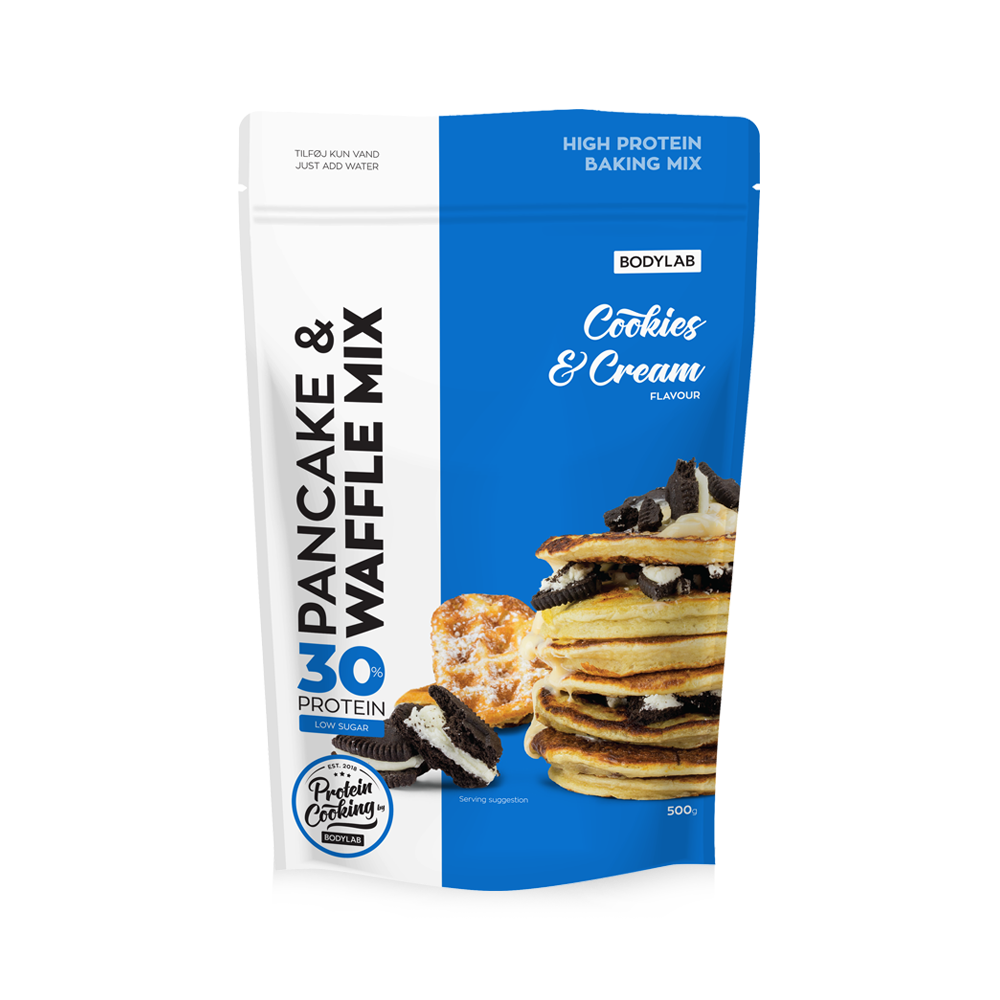 Protein Pancake & amp; Waffle Mix Cookies & amp; Cream 500g fra Bodylab er den perfekte løsning til hurtige og lækre måltider. Denne blanding gør det muligt, at lave vafler eller også pandekager på få minutter. Hvilket gør det ideelt til morgenmad eller også som snack.