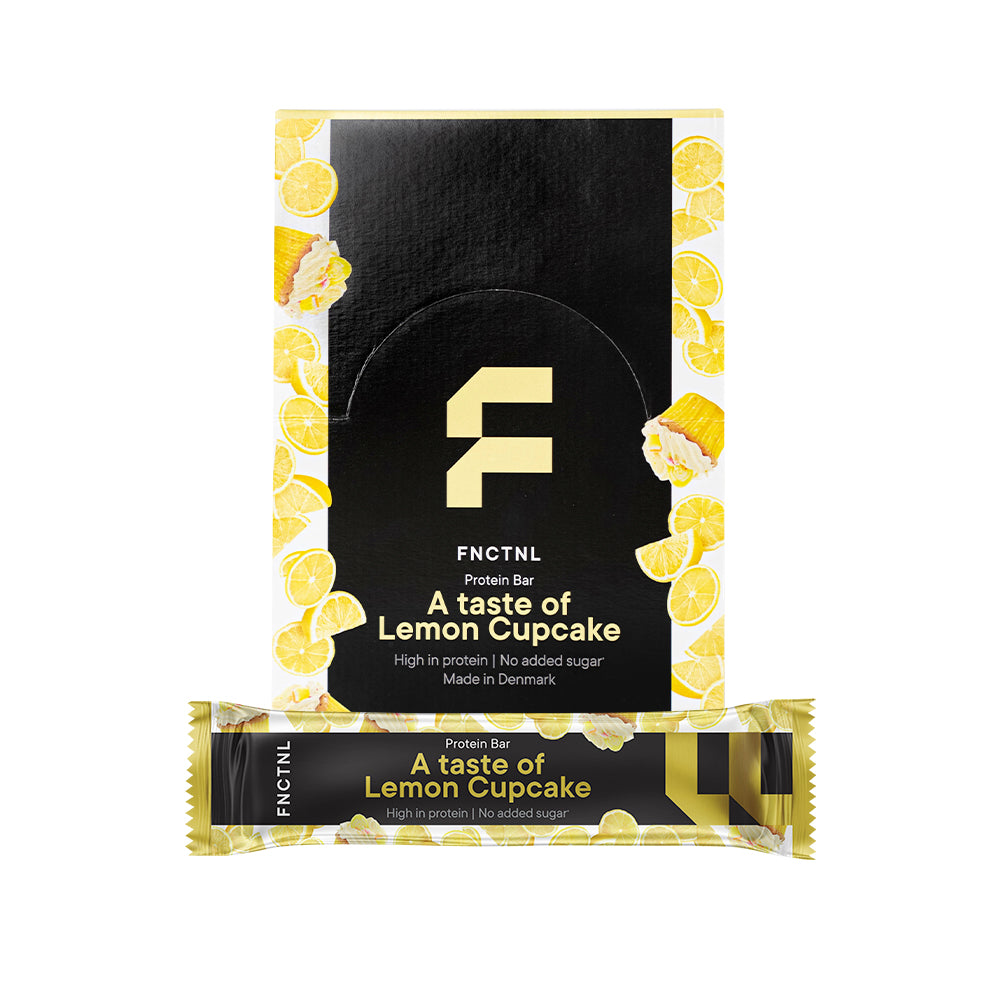 Functional Lemon Cupcake 12x55g er en sukkerfri proteinbar. Der giver dig en smagsoplevelse af saftig citronkage. Denne bar er perfekt til dig. Der ønsker, at forkæle dig selv uden, at gå på kompromis med kostholdet.