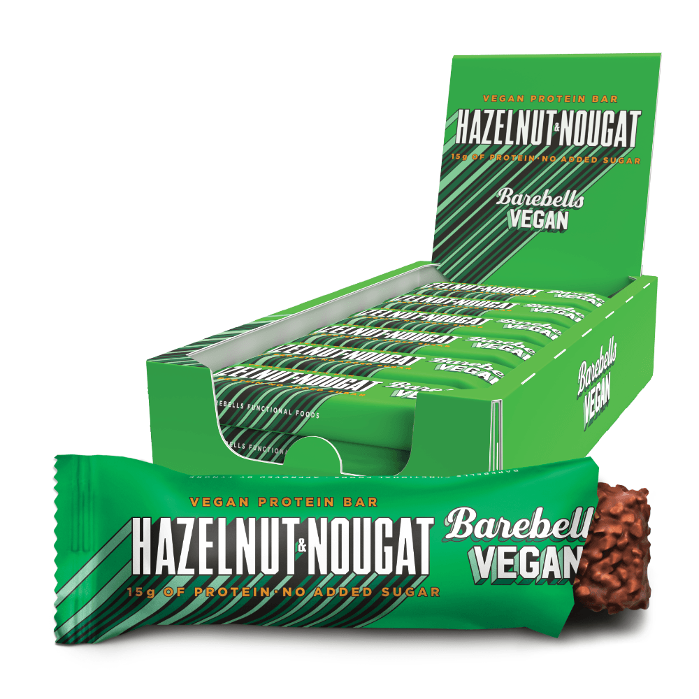 Vegan Hazelnut & amp; Nougat 12x55g er en plantebaseret proteinbar. Der kombinerer smagen af hasselnød og nougat. Denne bar fra Barebells er perfekt til dig. Der ønsker et lækkert og sundt alternativ.